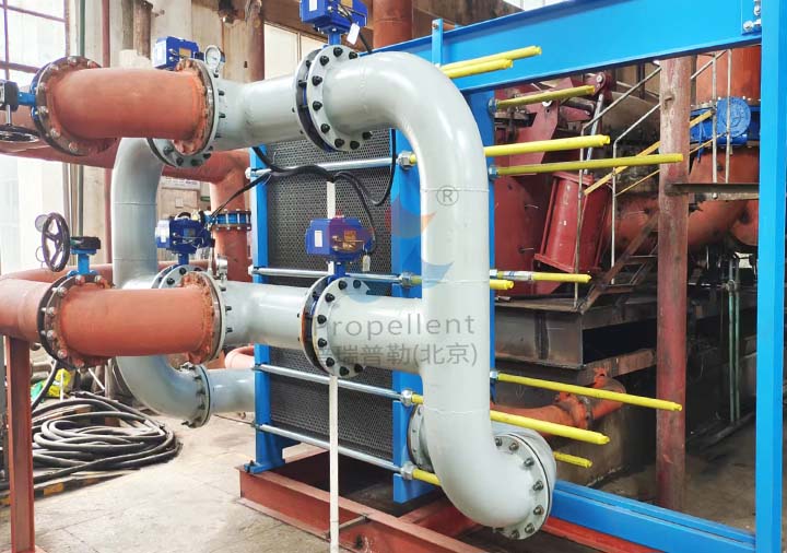 寬流道板式換熱器進行印染廢水余熱回收,將廢水中的熱量傳遞給工藝用水,節(jié)約能源,提高生產(chǎn)效率。